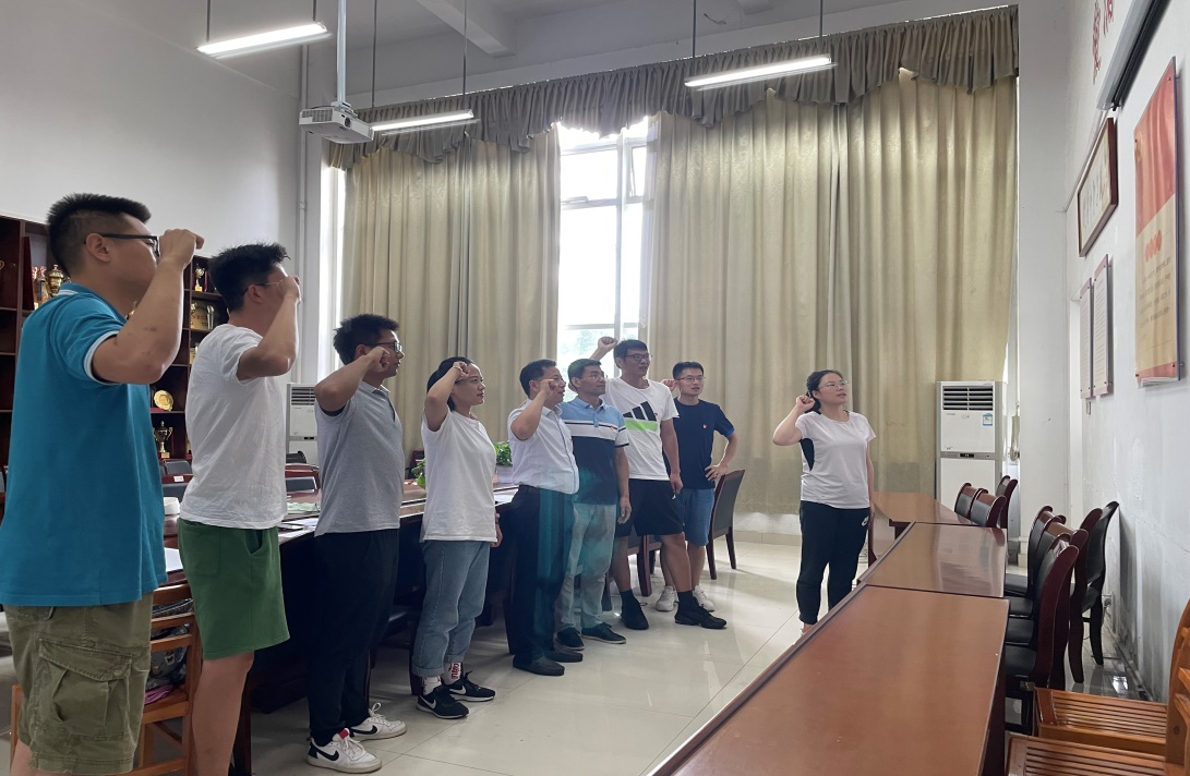 专题党课后,在体育馆党员活动室,支部书记闻剑飞带领全体党员重温入党誓词,他们面向党旗,右手握拳,庄严宣誓。铿锵有力的誓言昭示着听党话、跟党走、对党忠诚的决心和态度。进一步增强了党员的党性观念,激励着每一位党员传承红色基因,发扬红色传统,坚守初心,砥砺前行。(william威廉中文官网教工第四党支部)