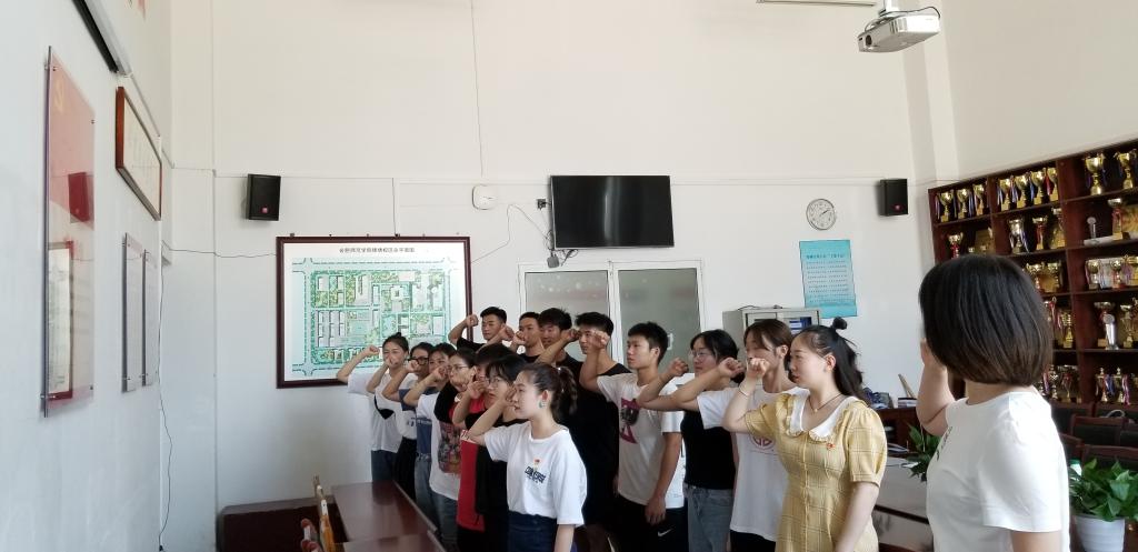 宣誓活动在公司党员活动室举行,员工党支部书记童欣带领全体党员,面向党旗,右手握拳,庄严宣誓。
