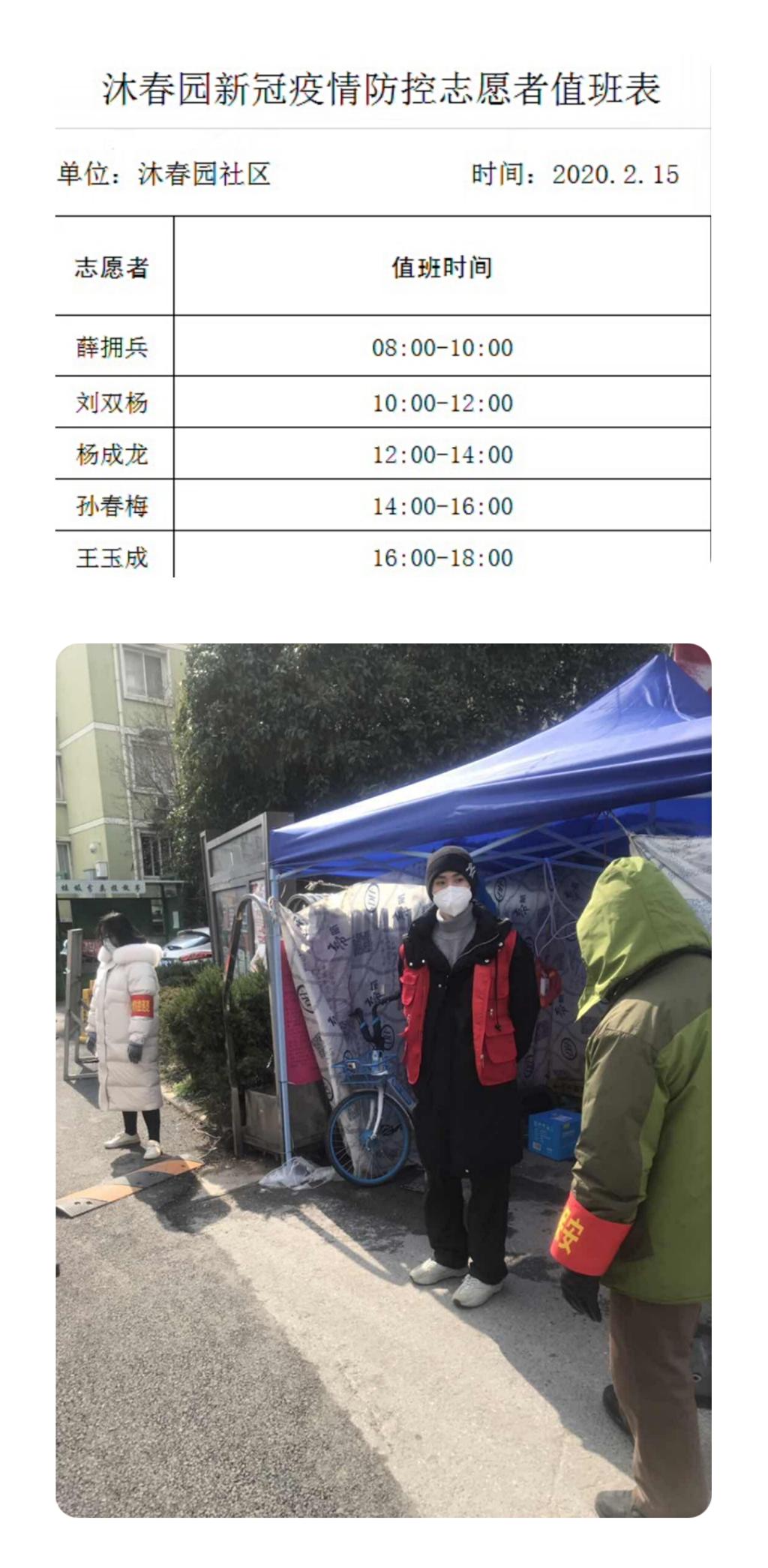 2017级运动训练班杨成龙,在芜湖的沐春园社区,参与到新冠肺炎疫情防控的志愿工作中,在小区门口,普及相关知识和防控措施,测量体温,做好小区消毒工作,他说:“我将无条件的支持、配合、参与到防控工作中,疫情面前,没有旁观者,我们都是逆行者。”