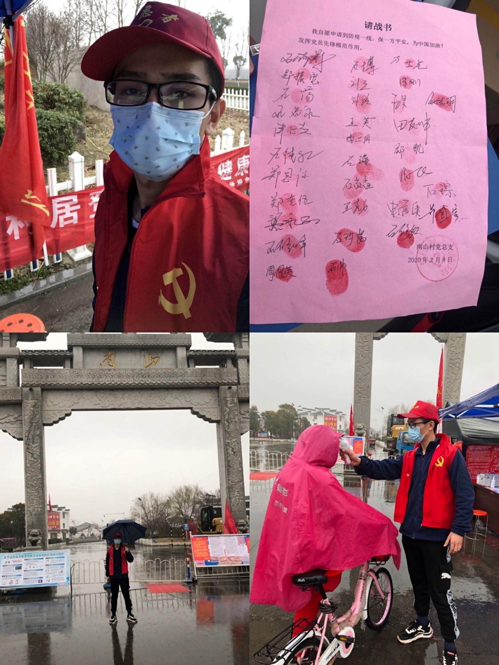 2016级舞蹈表演班石帅,主动报名在淮北市杜集区矿山集镇南山村做志愿者,负责村民进出的排查和测量体温等志愿工作,风雨无阻的疫情防控工作,他们筑起了一道亮丽的风景线。