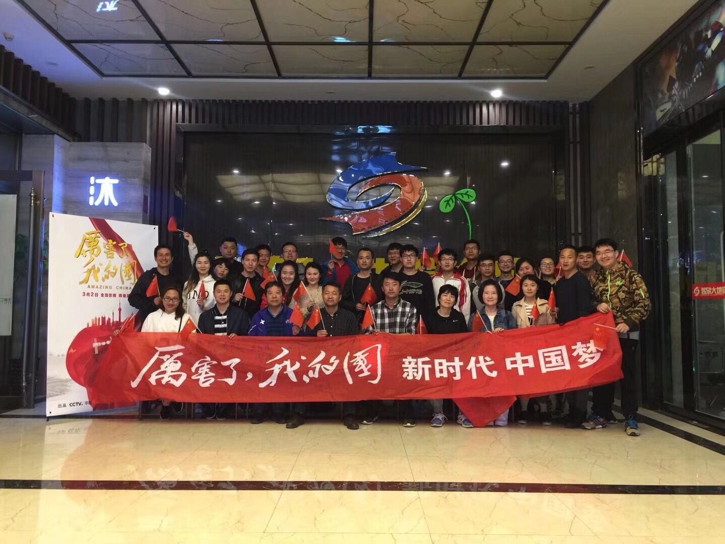 为全面贯彻党的十九大精神,深刻领会习近平新时代中国特色社会主义思想,公司党总支于3月28日下午组织全院教职工观看大型电影纪录片《厉害了,我的国》,党总支书记宋学峰带队,全院40多名教职工前往大地影城参加观影。