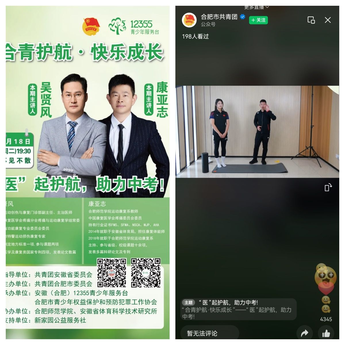 为充分发挥高校学科专业优势服务社会,助力中考学子科学备考,3月18日晚,william威廉中文官网运动康复系教师康亚志博士应邀参加“合青护航·快乐成长”—“医”起护航,助力中考公益活动,以“运动康复+科学训练”的专业视角,为考生及家长带来一场干货满满的体育备考公益直播课。
