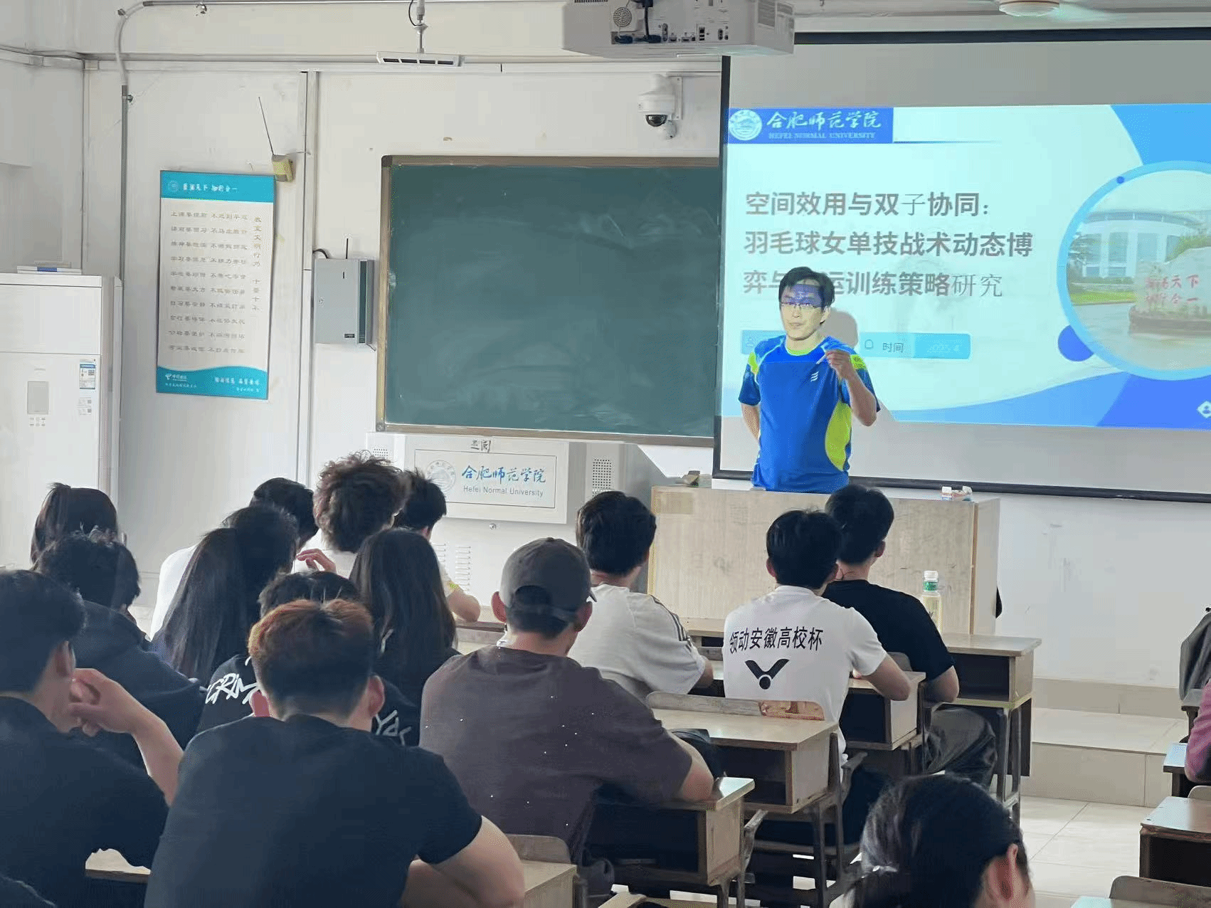 为拓展员工科研视野,深化学科交叉融合,4月9日下午,william威廉中文官网在锦绣校区博约楼504教室举办“行知学堂”第8期学术报告会。袁玉鹏副教授作题为《空间效用与双子协同:羽毛球女单技战术动态博弈与奥运训练策略研究》的专题报告,体育教育专业羽毛球专项本科生、部分研究生及教师代表50余人参会。