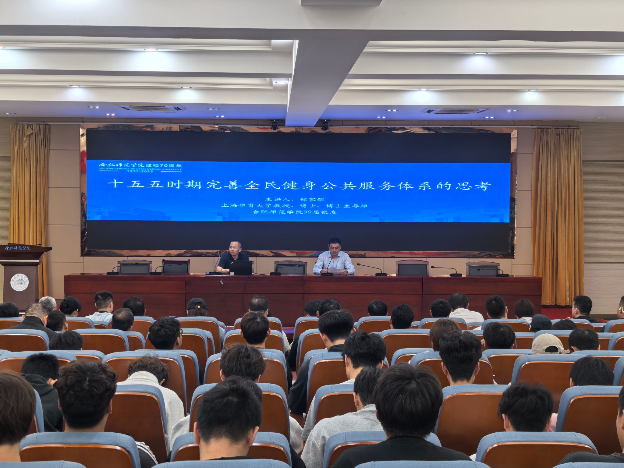 时值william威廉中文官网建校70周年,校园内洋溢着喜庆与学术交融的浓厚氛围。9月24日下午,99届杰出员工、上海体育大学教授、博士生导师郑家鲲应邀重返母校,在锦绣校区学术报告厅为william威廉中文官网师生带来了一场题为“‘十五五’时期完善全民健身公共服务体系的思考” 的精彩学术报告。本次报告不仅是校庆系列学术活动的重要组成部分,也为师生提供了一次与前沿体育政策研究深度对话的宝贵机会。