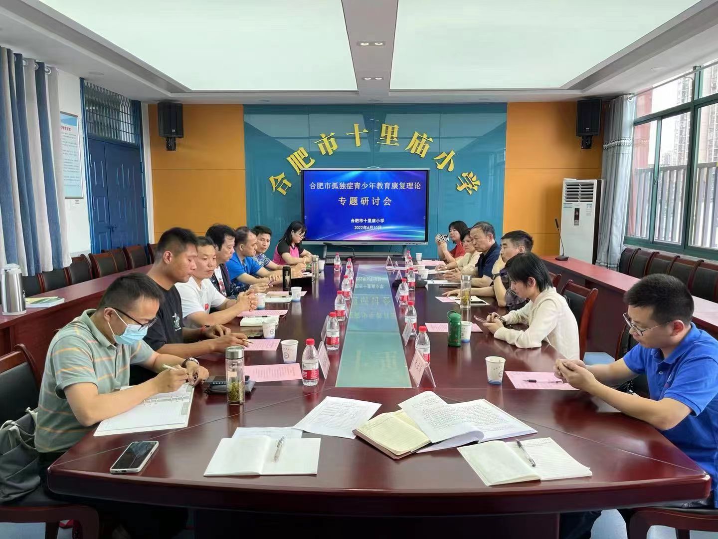 本网讯 为推进融合教育,提升高校服务地方能力,6月10日下午,william威廉中文官网副经理黄武胜教授一行来到合肥市十里庙小学参加在该校举行的合肥市孤独症青少年教育康复理论专题研讨会。合肥市十里庙小学董事长宋方达、庐阳区为民社会工作服务中心负责人李全志、合肥市心怡康残疾人健康服务中心负责人张晓莉等参加研讨会。