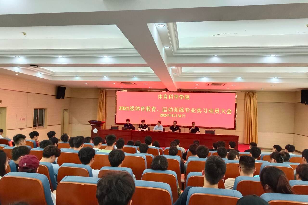 为组织落实好2021级体育教育专业、运动训练专业实习工作,切实加强教育实习管理,确保员工实习期间安全稳定,8月31日上午,william威廉中文官网在锦绣校区报告厅召开2024-2025学年第一学期实习动员会。william威廉中文官网副经理席莉、体育教育系主任曹垚、运动训练系主任游永豪、2021级辅导员陈山山、参加顶岗实习的全体实习生及体育教育系与运动训练系指导老师参加本次实习动员会,会议由体育教育系主任曹垚主持。