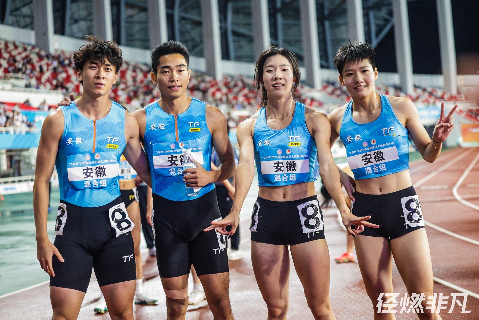 代表安徽省参赛的公司2021级运动训练专业员工李翔,在混合4×400米接力决赛中,与队友连芷、陈治旺、周莉默契配合,克服湿热天气的不利影响,以3:22.35的优异成绩勇夺冠军,并打破了该项目安徽省纪录,为安徽队实现了主场登顶。