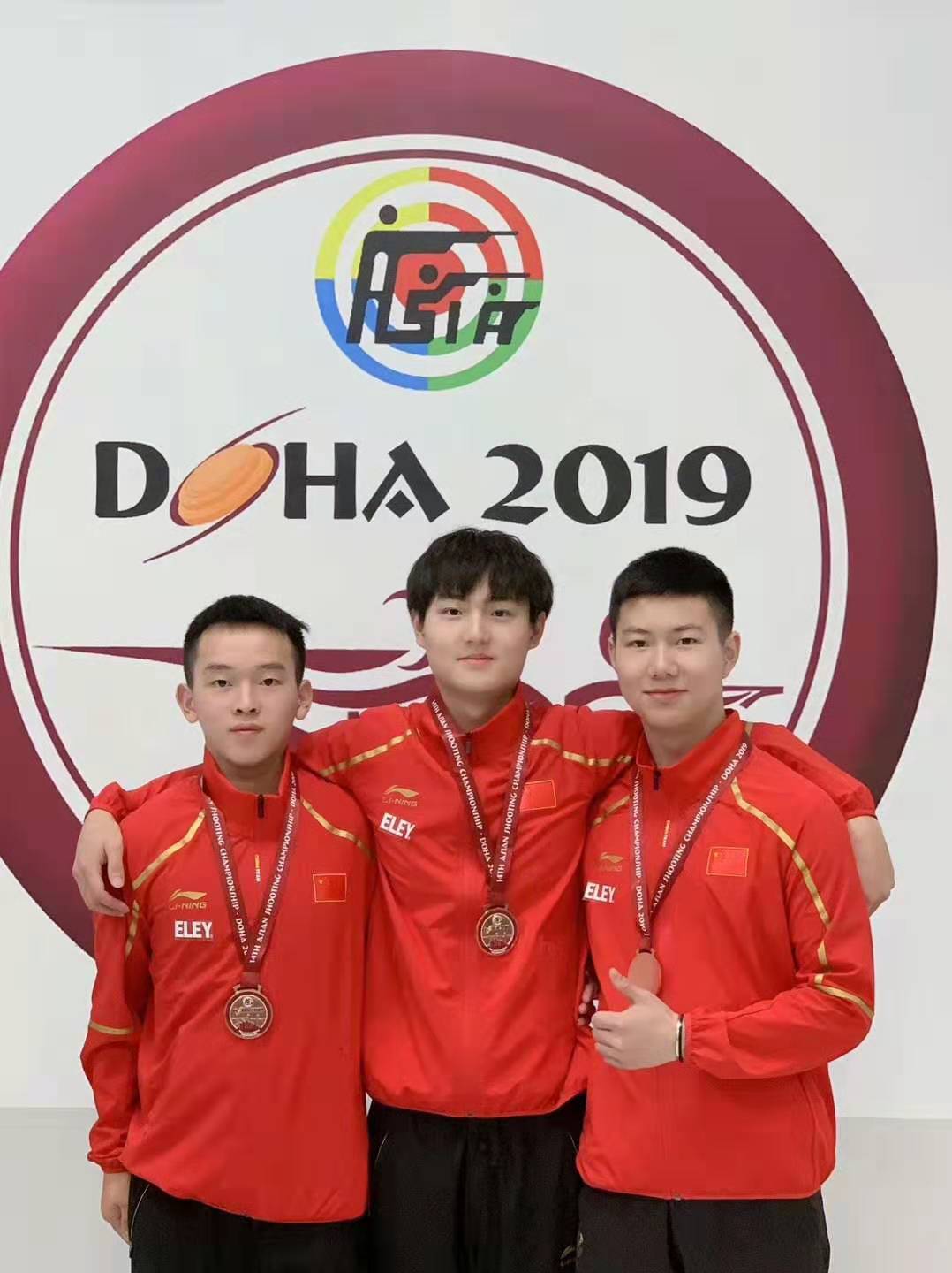 本网讯 第十四届亚洲射击锦标赛近日在卡塔尔多哈举行。在男子10米气手枪少年组比赛中,公司2019级运动训练专业员工周子涵与国家队队友夺取团体第三名。另外周子涵以资格赛561环、决赛174.3环的成绩获得个人第五名。