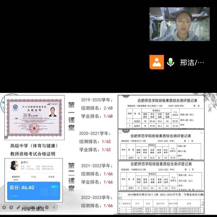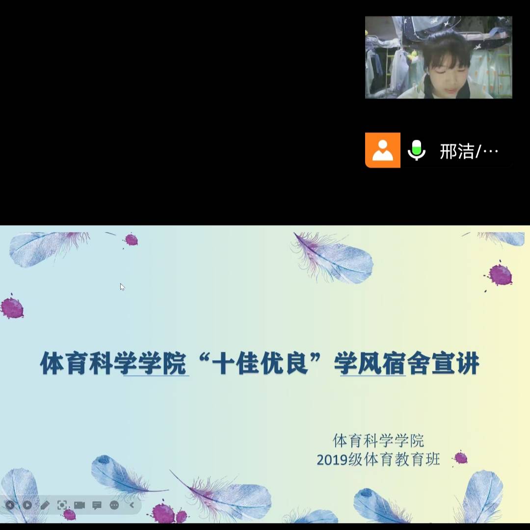 邢洁是2019级体育教育专业员工、十佳优良学风宿舍5#603宿舍长,她分别从宿舍成员介绍、课内课外活动、展望寄语等几个方面详细介绍宿舍学风创建方法与成效。宣讲中她鼓励同学们宿舍是一个集体,要以宿舍为家,互帮互助、共同发展、共同成长。