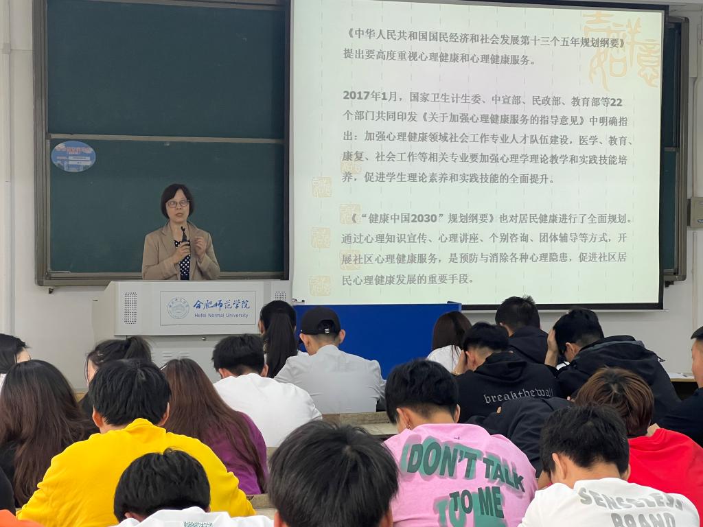 陈庆华教授通过朴实的语言,援引当今社会存在的心理问题,解释“忙”“茫”“盲”这三个字的含义,并结合老员工生活实际说明心理健康的重要意义,解读心理健康的标准,使同学们明白了在适应环境的过程中,心理和社会性方面达到协调一致,保持良好的心理功能状态,为有效成长、健康生活做准备。最后,陈教授用新伊索寓言故事“狐狸与葡萄”,引导同学们学会正确认识自我,接受他人,善与人处;面对现实,热爱生活,知足常乐,于细微处感知幸福。
