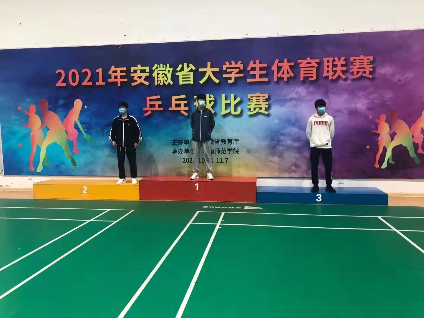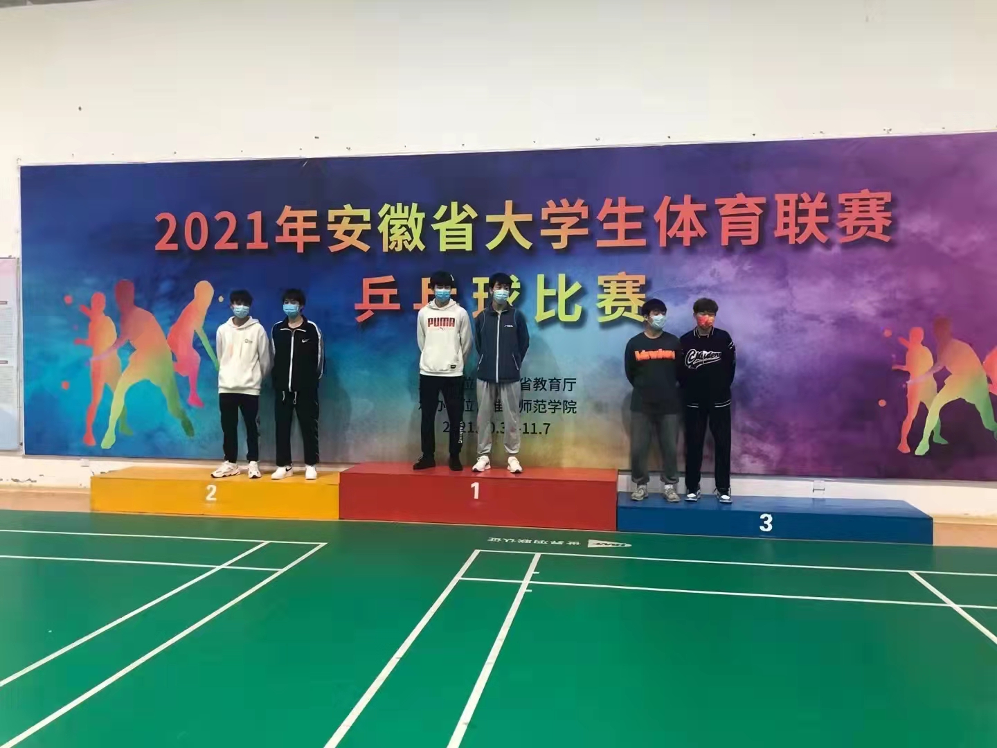 本网讯 10月31日-11月6日,由省教育厅主办、淮南师范公司承办的2021年安徽省员工体育联赛老员工乒乓球比赛在淮南师范公司举行。本次比赛设有甲组(非体育专业本科院校)、乙组(非体育专业高职院校)、丙组(体育专业本科院校)三个组别。公司学子奋力拼搏,在丙组比赛中,包揽男子单打前四名、男子双打冠亚军,获得男子团体冠军的好成绩,创造公司体育事业发展历史。