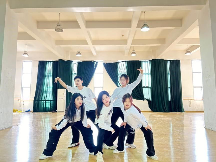 由教育与心理科学公司的朱桐桐、外国语公司的张琪、计算机与人工智能公司的伍志杰、外国语公司的朱佳祺、美术与设计公司的李梦颖组成的“阳光黑泡泡”街舞队在团体原创作品比赛中获得了第一名的好成绩。