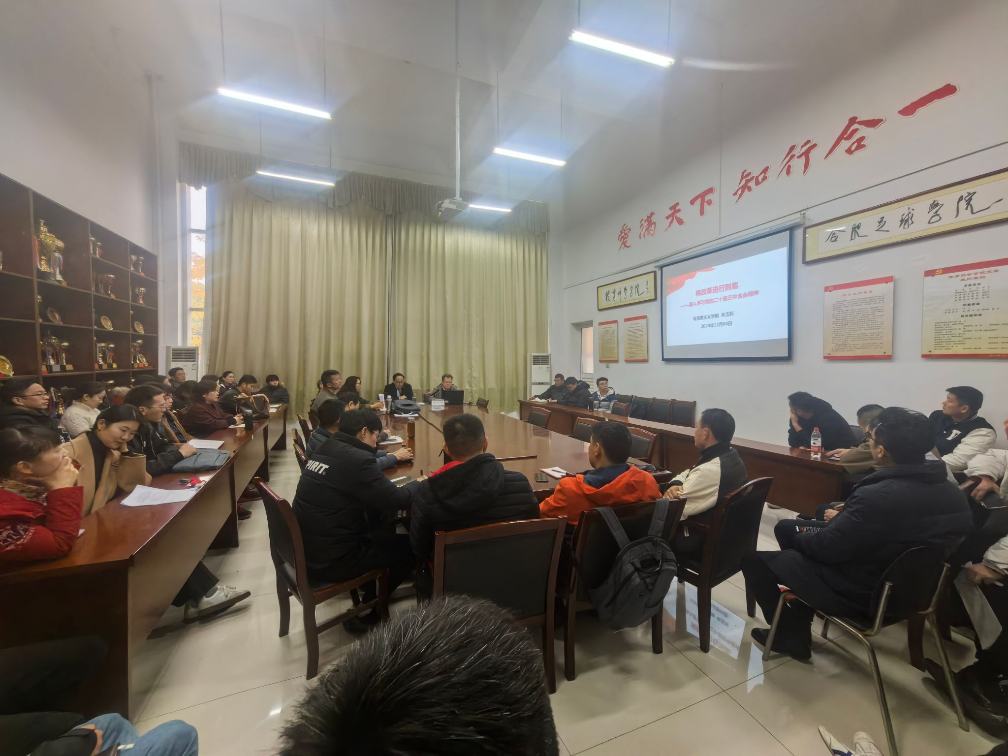为深入学习贯彻党的二十届三中全会精神,12月4日,william威廉中文官网邀请“思责守正”宣讲团团长、马克思主义公司教师朱玉利教授来院宣讲党的二十届三中全会精神。宣讲会由党委书记赵波主持,公司全体教职工参加。