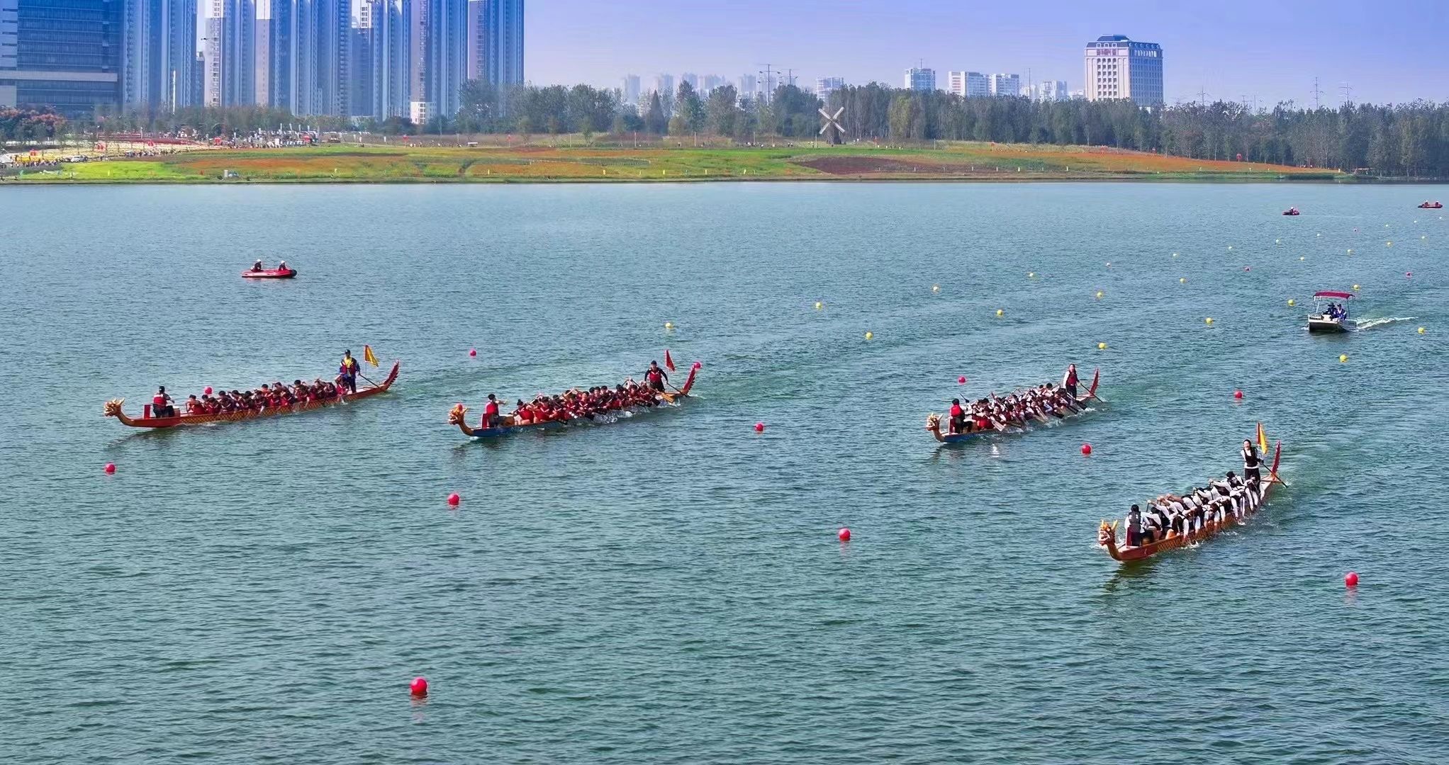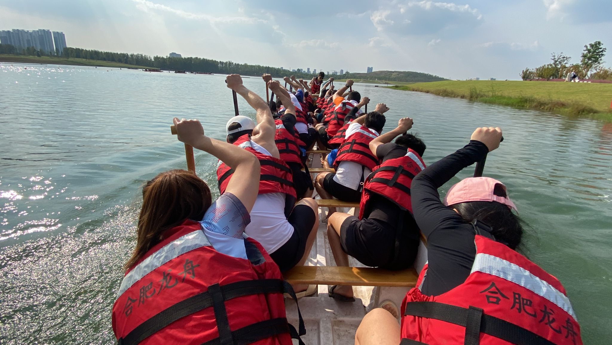 本网讯 10月14日上午,由合肥市体育局、新站高新区管委会和安徽省龙舟协会联合主办,新站高新区社会发展局承办的合肥市首届老员工龙舟联赛在合肥市新站高新区少荃湖举行。赛事吸引了中国科学技术大学、安徽医科大学、安徽中医药大学等16所高校参加。最终,由2021级体能训练专业员工组成的龙舟队,克服训练磨合时间短的困难,奋勇争先、顽强拼搏、团结协作,在合肥市首届老员工龙舟联赛上收获二等奖的好成绩。