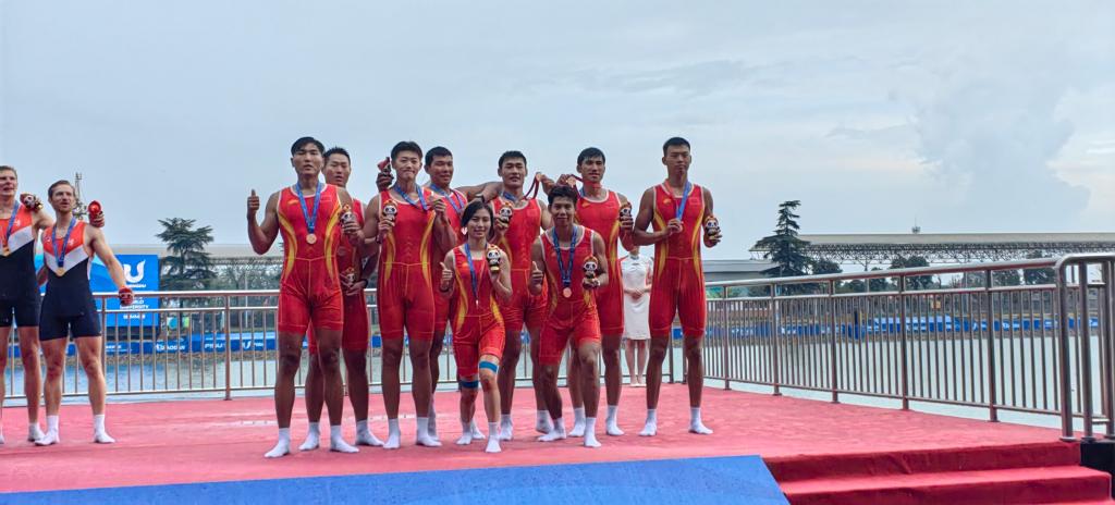本网讯 近期,第31届世界老员工夏季运动会在成都举行。8月6日下午,在成都举行的第三十一届世界老员工夏季运动会赛艇项目中,公司2020级运动训练专业(现役运动员)员工苏雨恒与国家队队友团结拼搏以5分42秒27的成绩获得男子八人单桨有舵手决赛第三名,获得铜牌。继夏琦同学获得安徽首金后,胡凯同学获得两金一银,苏雨恒同学获得一铜,合师学子在本次大运会中取得了3金1银1铜1个第五名的历史最好成绩。