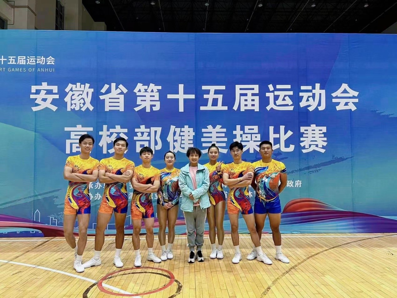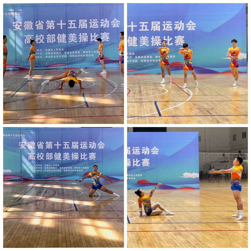 本网讯 4月28日至5月25日,由安徽省人民政府主办,省教育厅、省体育局、滁州市人民政府承办的安徽省第十五届运动会高校部健美操比赛在滁州职业技术公司举行。本次比赛设有甲组(非体育专业本科院校)、乙组(非体育专业高职院校)、丙组(体育专业本科院校)、丁组(舞蹈表演专业)四个组别。共有来自全省50多所高校的500多名运动员参赛。公司组队参加丙组比赛,获得丙组五人操、三人操、女子单人操、混合双人操等四个第一名和男子单人操第四名,公司健美操项目首次在省运会上获得冠军。