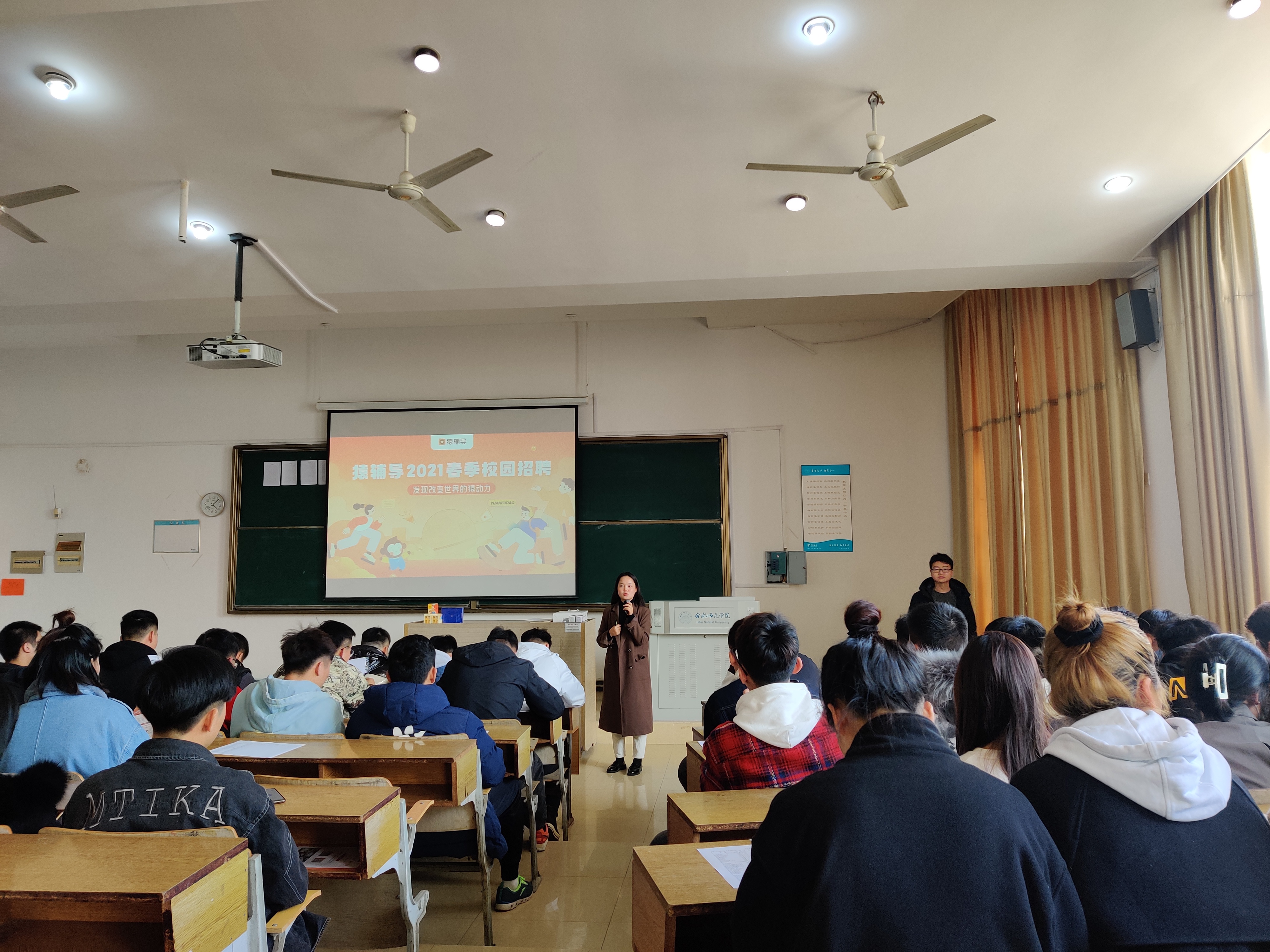 招聘单位分别就公司简介、招聘岗位、薪资待遇、面试流程、工作安排等给毕业班同学们进行一一介绍,并就同学们关心的待遇和个人发展问题进行细致解答。宣讲会上同学们讨论热烈,进一步反映出同学们对于毕业就业的迫切心情,宣讲会也达到预期目的。