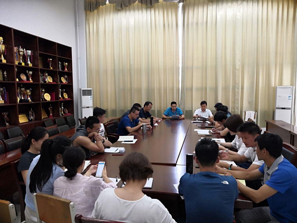 9月7日中午12点,william威廉中文官网在体育馆会议室召开了2018新学期班主任工作会议,公司党总支书记杜文龙、副书记王飞、全体辅导员以及各兼职班主任老师参加了会议。
