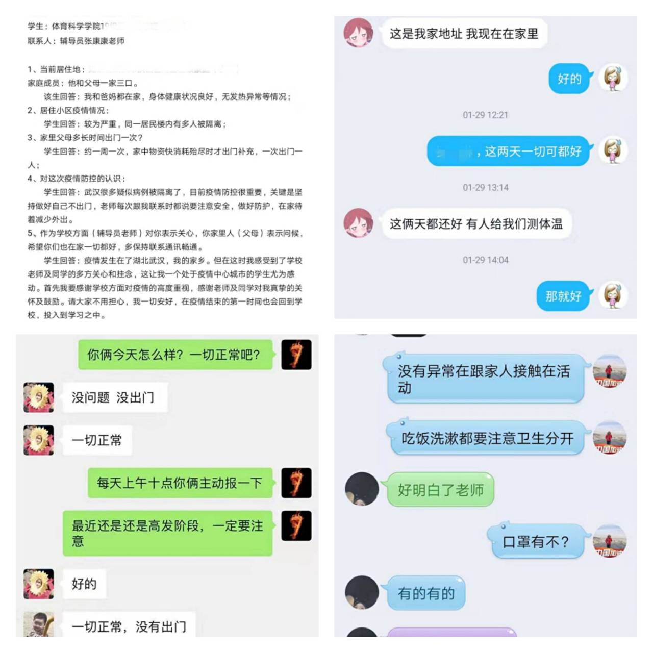 公司紧紧围绕公司统一决策部署,坚决落实员工全覆盖“打卡”“日报”,通过班级QQ、微信群以及今日校园APP进行健康状态每日一报、每日打卡。“打卡”“日报”制由公司党总支书记统一协调部署,打卡状态由各年级辅导员监督汇报,全体学工老师上下一心,努力为疫情防控守好责、站好岗。