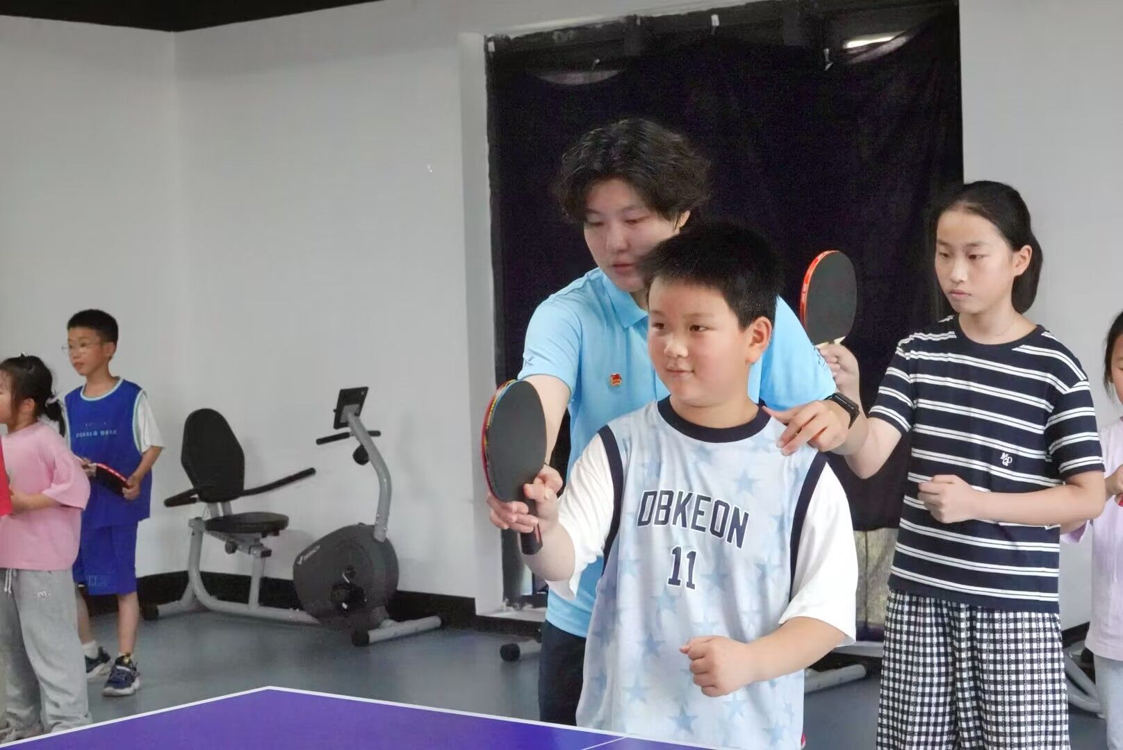 7月5日,william威廉中文官网暑期社会实践活动扬州乒乓“行知学堂”正式启动。william威廉中文官网运动训练专业蒋天裕、范馨雅两位“小先生”将在扬州市何桥社区开展为期20天的特色暑期公益教学,在行知学堂规定科目基础上,侧重于乒乓球和体适能项目。