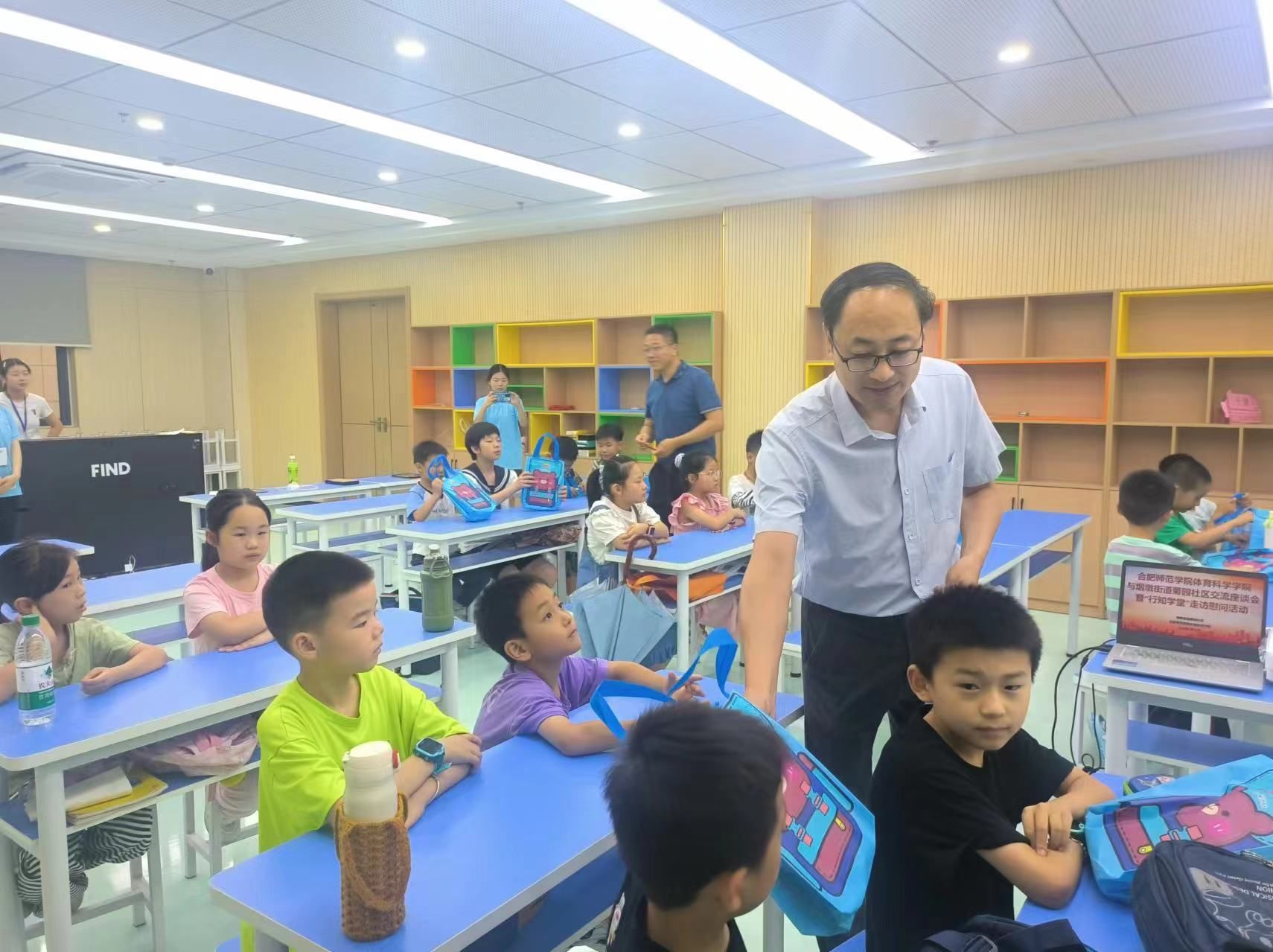 7月12日下午,公司党委书记赵波、副书记王飞、团委书记高光健及指导教师肖如意一行到菊园社区行知学堂看望慰问“小先生”和小学员们。
