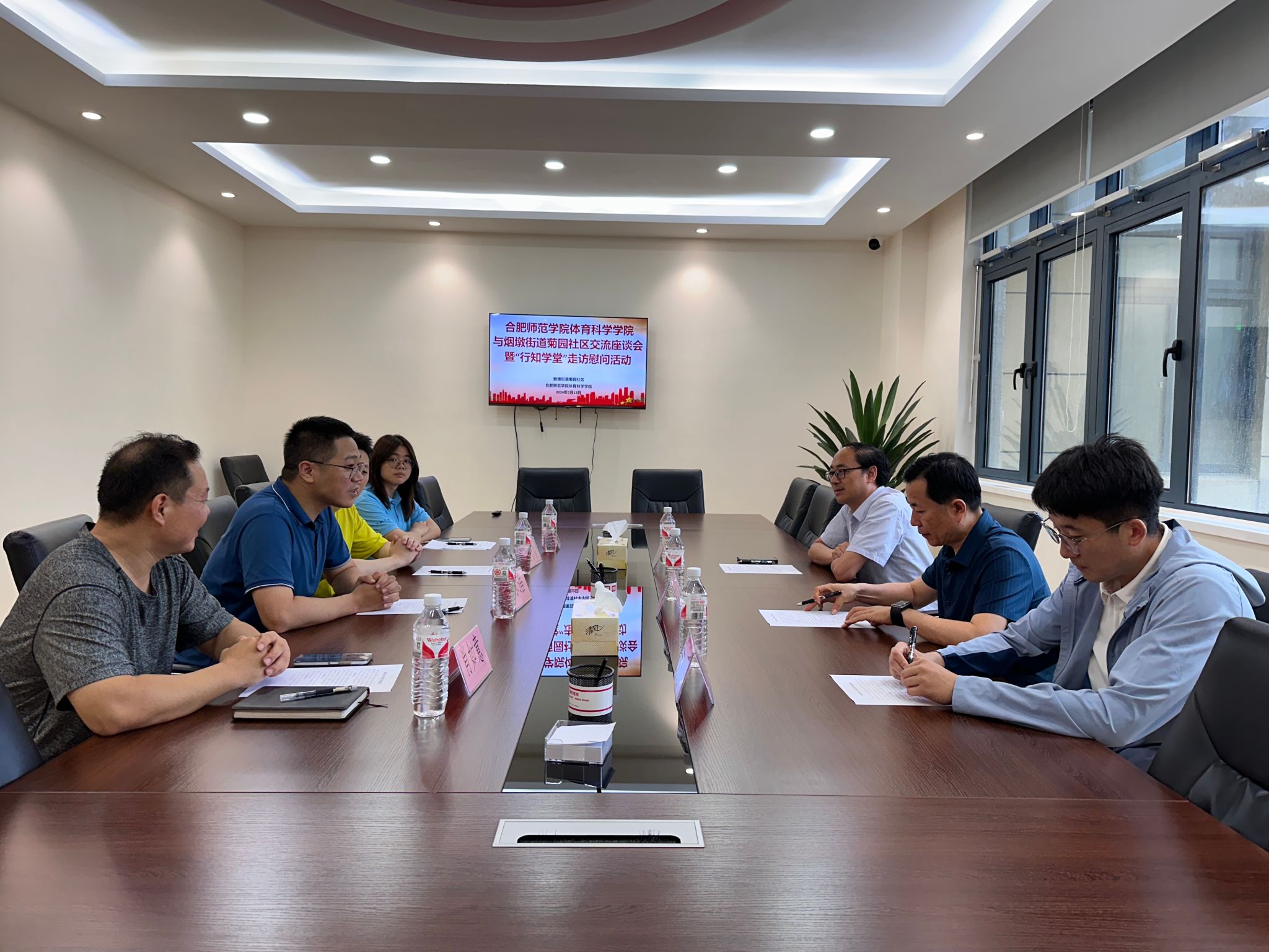 赵波对菊园社区搭建的平台和提供的场地及服务表示感谢,并简要介绍公司发展历程、办学特色和“行知学堂”志愿服务成效,他表示公司将利用自身特色和优势,在群众体育、公司体育、体育产业及员工实践等方面加强与地方合作,形成共识,共促发展。