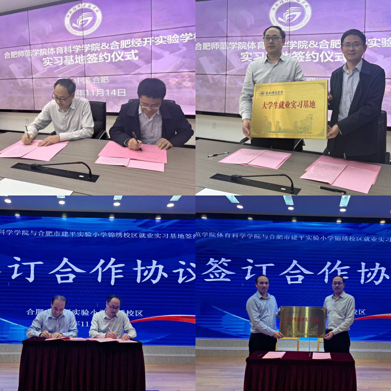 为切实落实就业优先战略,促进老员工高质量充分就业,加强校地合作,推动人才培养,实现合作共赢,11月14日下午,公司党委书记赵波、副书记王飞,体育教育系主任曹垚、副主任陆保云,张猛、毕业班辅导员陈山山等一行赴合肥经开实验公司、合肥市建平实验小学(锦绣校区)推进员工就业实习基地建设。