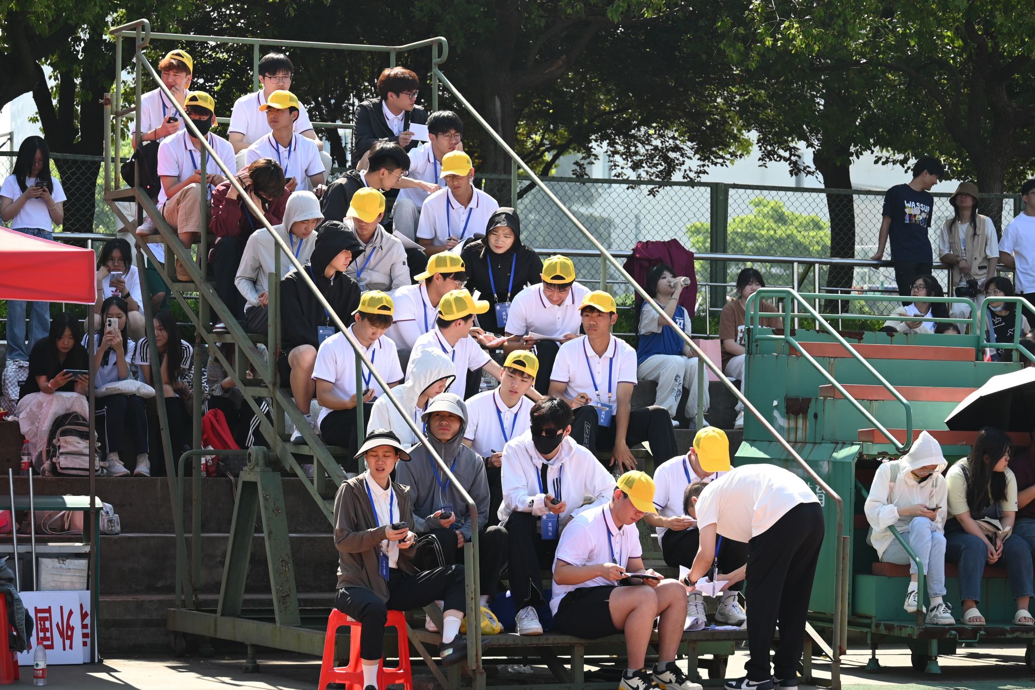 操场另一端,计时裁判收到来自起点处的红旗信号,同时按下了手中的计时器。对于径赛来说,计时是衡量公平的决定一环。计时员们目不转睛地盯着负责赛道的运动员,在到达终点的那一刻掐下计时器,记录成绩。