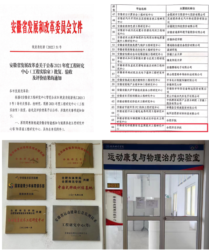 (3)实验(践)教育平台不断夯实。本专业建设有安徽省运动健康信息监测技术工程研究中心、安徽省国民体质监测分中心两个省级科研平台;建有数字体育与生物力学实验室、物理治疗与运动康复实验室、体能训练与评估实验室、运动生理机能评估实验室、低氧健身技术与低氧习服评估实验室等7个实验室,配备了三维动作捕捉与分析系统、骨密度仪、动脉硬化检测装置、体外冲击波治疗仪、干涉波疼痛治疗仪、爆发力训练与测试系统、多功能离心测试训练平台等近1000万的教学科研设备;同时,与中国科学技术大学附属医院(省立医院)、东南大学附属中大医院、常州市体育医院、安徽省体育科学技术研究所、合肥产投励源运动康复中心等共建实践教学基地。通过实验(践)教育,提高员工应用知识的能力,强化专业技能,培养适应未来工作所需的操作能力和综合素质;同时,培养运动康复领域创新能力和创业能力。