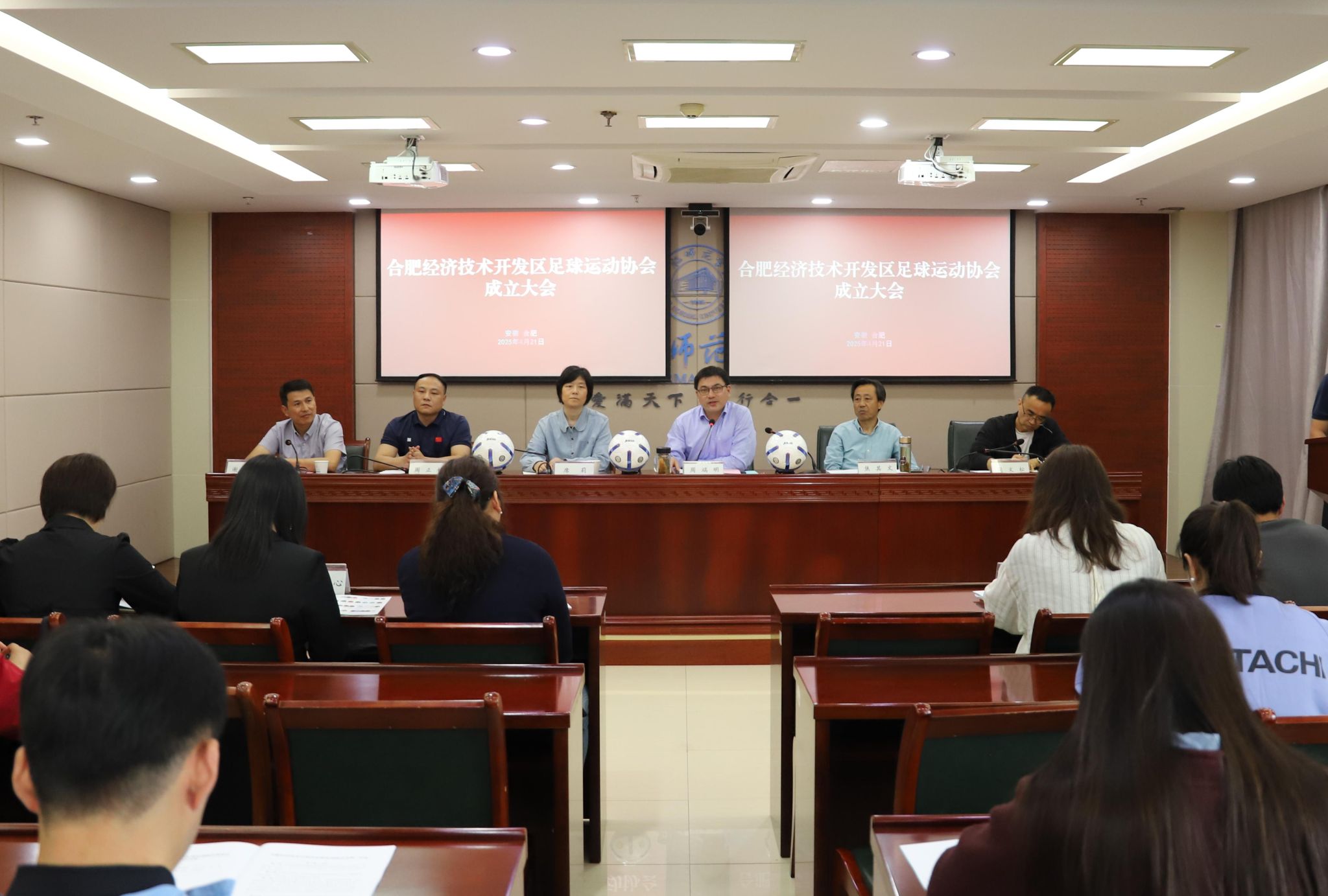 4月21日下午,合肥经开区足球协会成立大会暨第一届会员代表大会在william威廉中文官网锦绣校区顺利召开。合肥师范公司党委委员、副经理周端明,合肥市足球运动协会主席焦其文,william威廉中文官网副经理席莉,合肥经开区社发局体艺处周正林、郑倩,合肥经开区体育总会主席周文松、秘书长丁俊等出席会议,各(街道)社区相关工作负责人,安徽大众、蔚来汽车、联宝电子、日立建机多家区内企业代表以及协会全体会员等近百人参会。